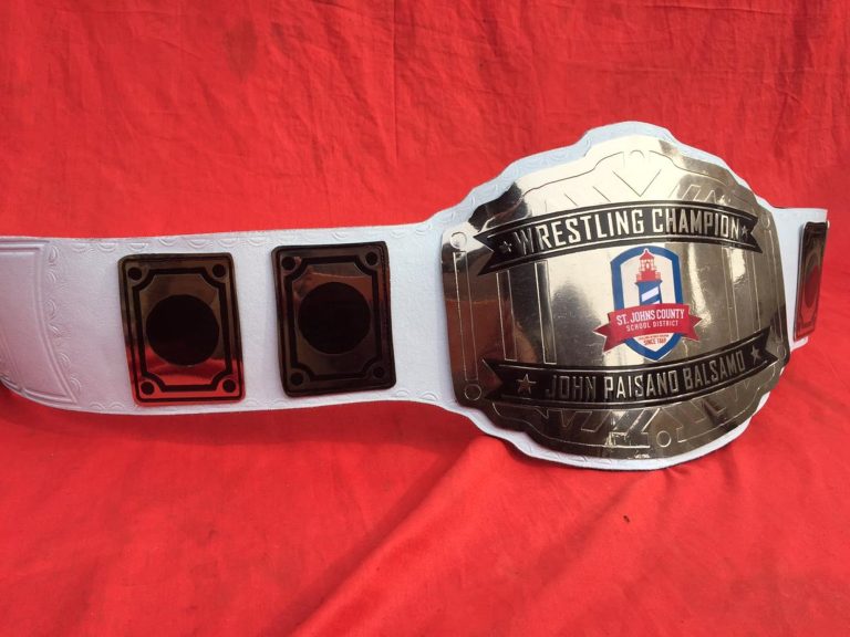 Custom Name and St . Johns County School Logo Wrestling Championship Belt