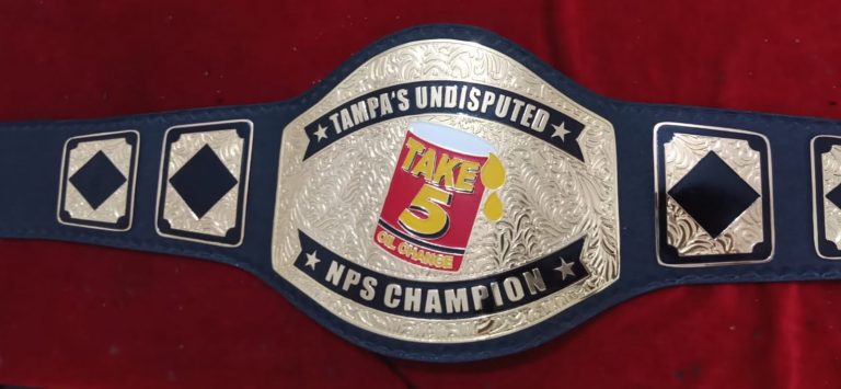 Custom Name and Take 5 Oil Change Can Logo Wrestling Championship Belt