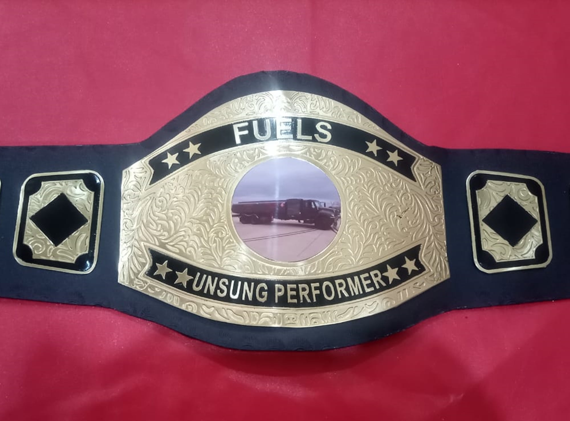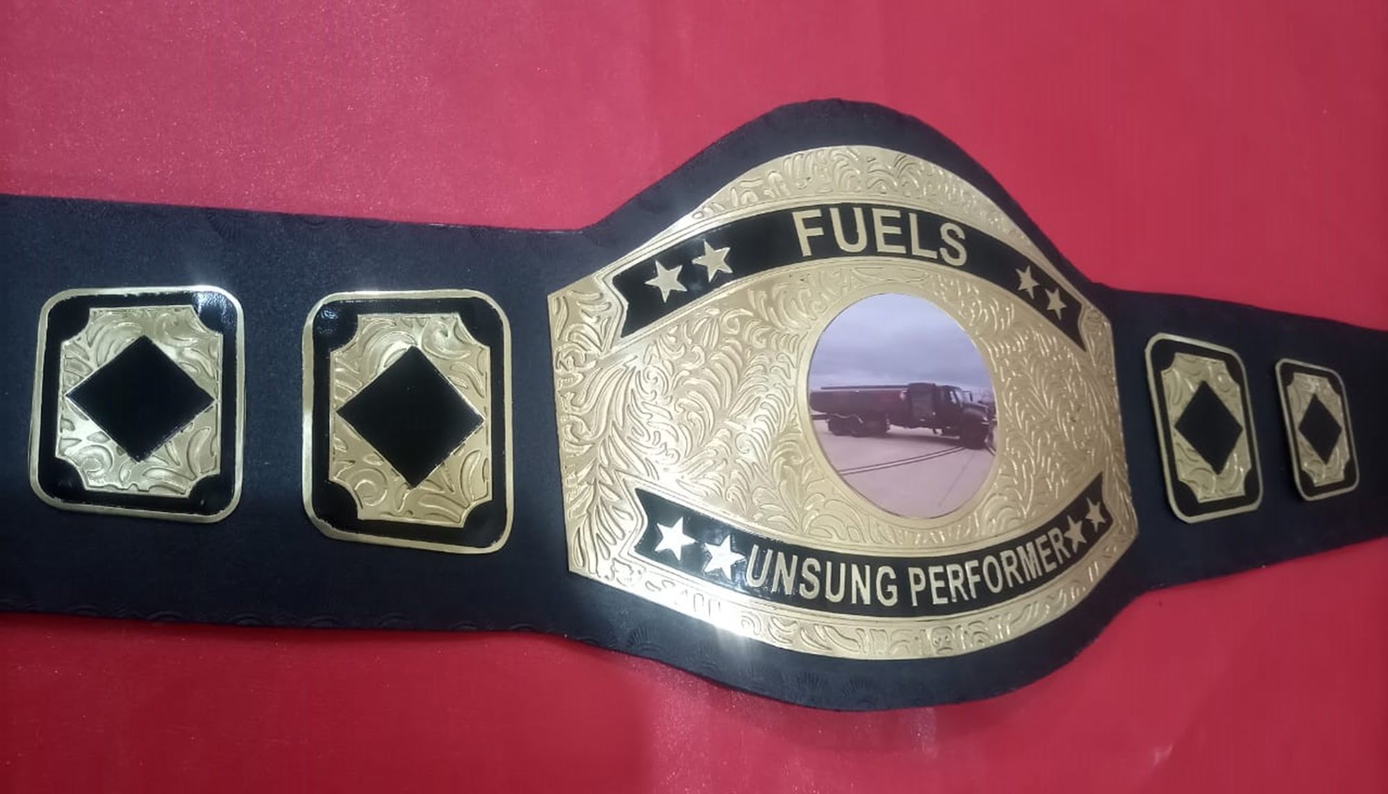 Custom Name and Military Fuel Truck Logo Wrestling Championship Belt