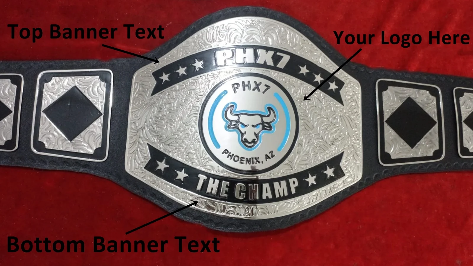 Name and Bull Head Logo Custom Wrestling Championship Belt